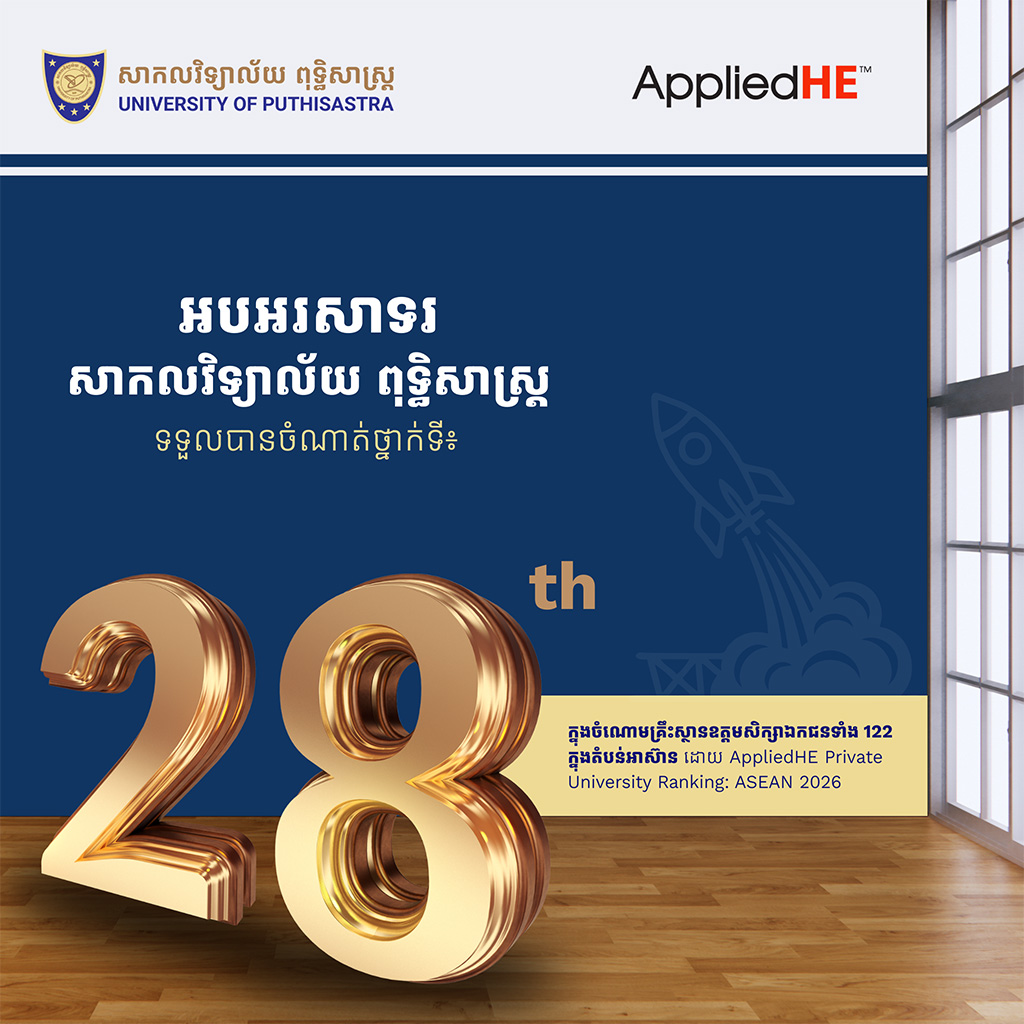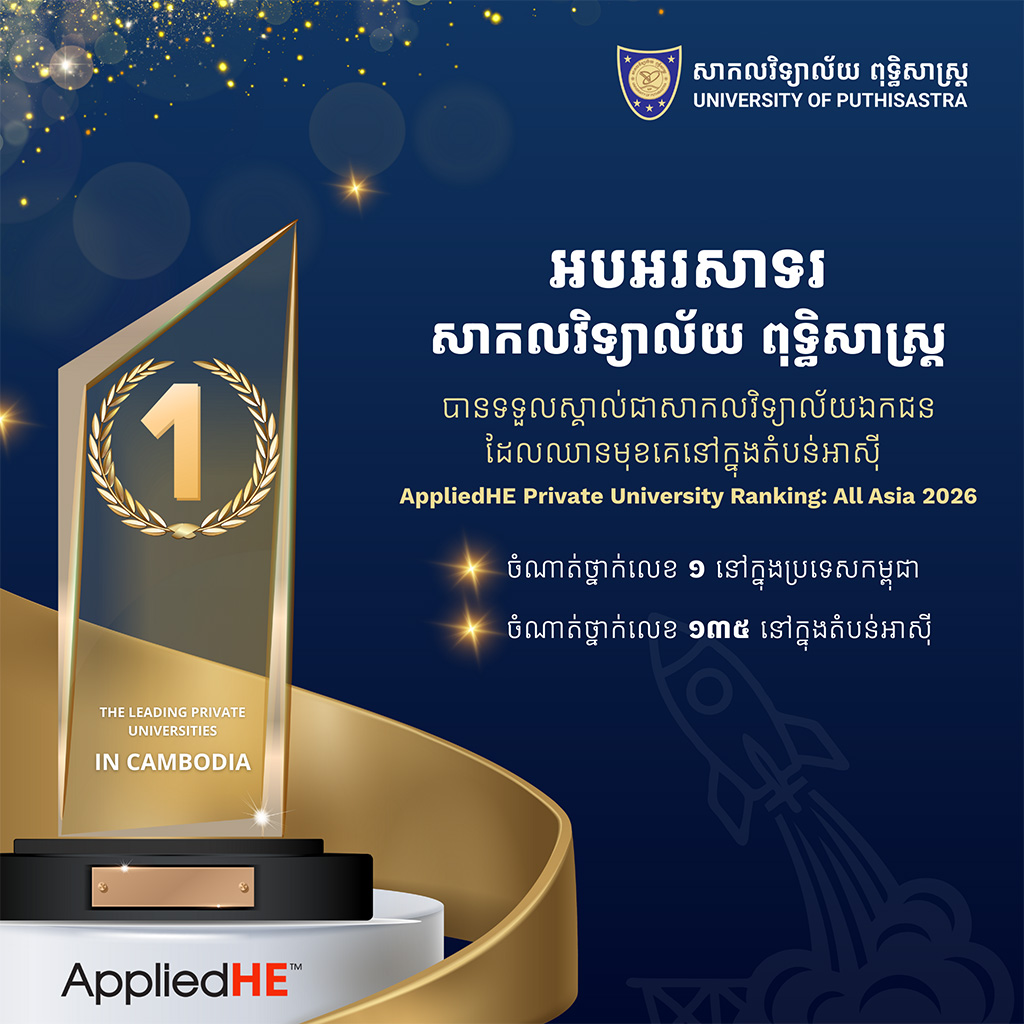 The University of Puthisastra (UP) has been ranked by the AppliedHE Private University Ranking: All Asia 2026. Through critical evaluation, UP has achieved an impressive ranking of #135th in Asia and has been placed 1st in Cambodia among private universities. These outcomes have underscored the university’s increasing reputation not only at the national level but also across Asian region.